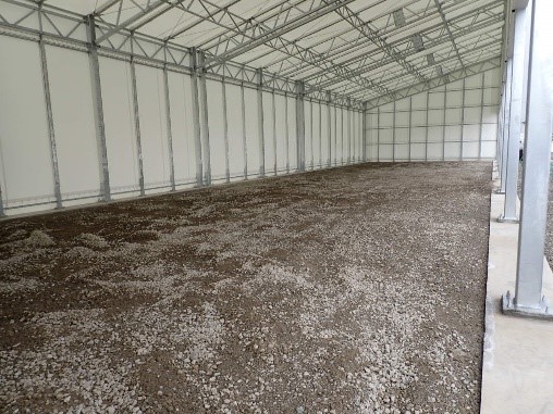 施工概要としては、「PATプレード3Dマシンコントロール」を利用し、屋内広場の路盤を3tクラスのミニバックホウによる整正。